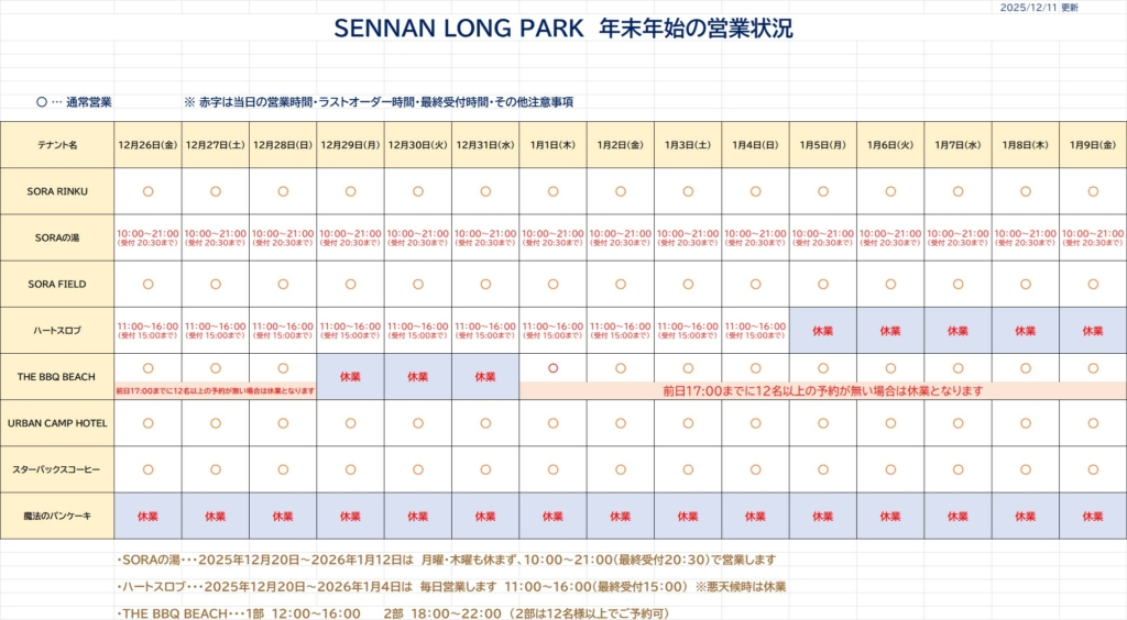いつもSENNAN LONG PARKをご利用いただきまして、誠にありがとうございます。