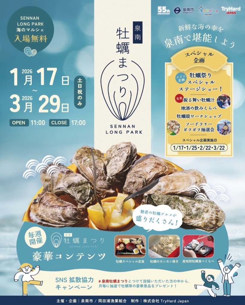 大好評につき2026年も冬の名物イベント「泉南牡蠣まつり」を開催します😄