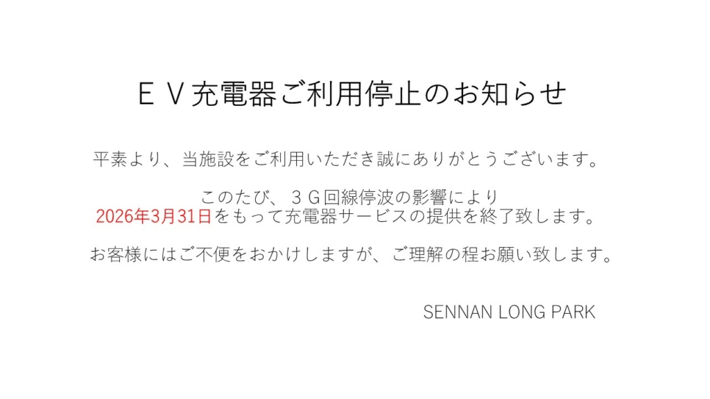 いつもSENNAN LONG PARKをご利用いただき誠にありがとうございます。