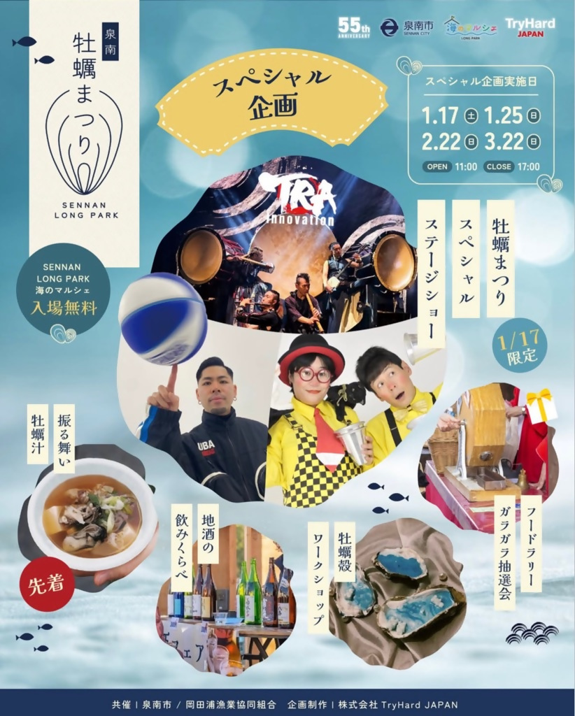 前回好評を博した「泉南スペシャル牡蠣定食」や「牡蠣食べくらべ」をはじめ